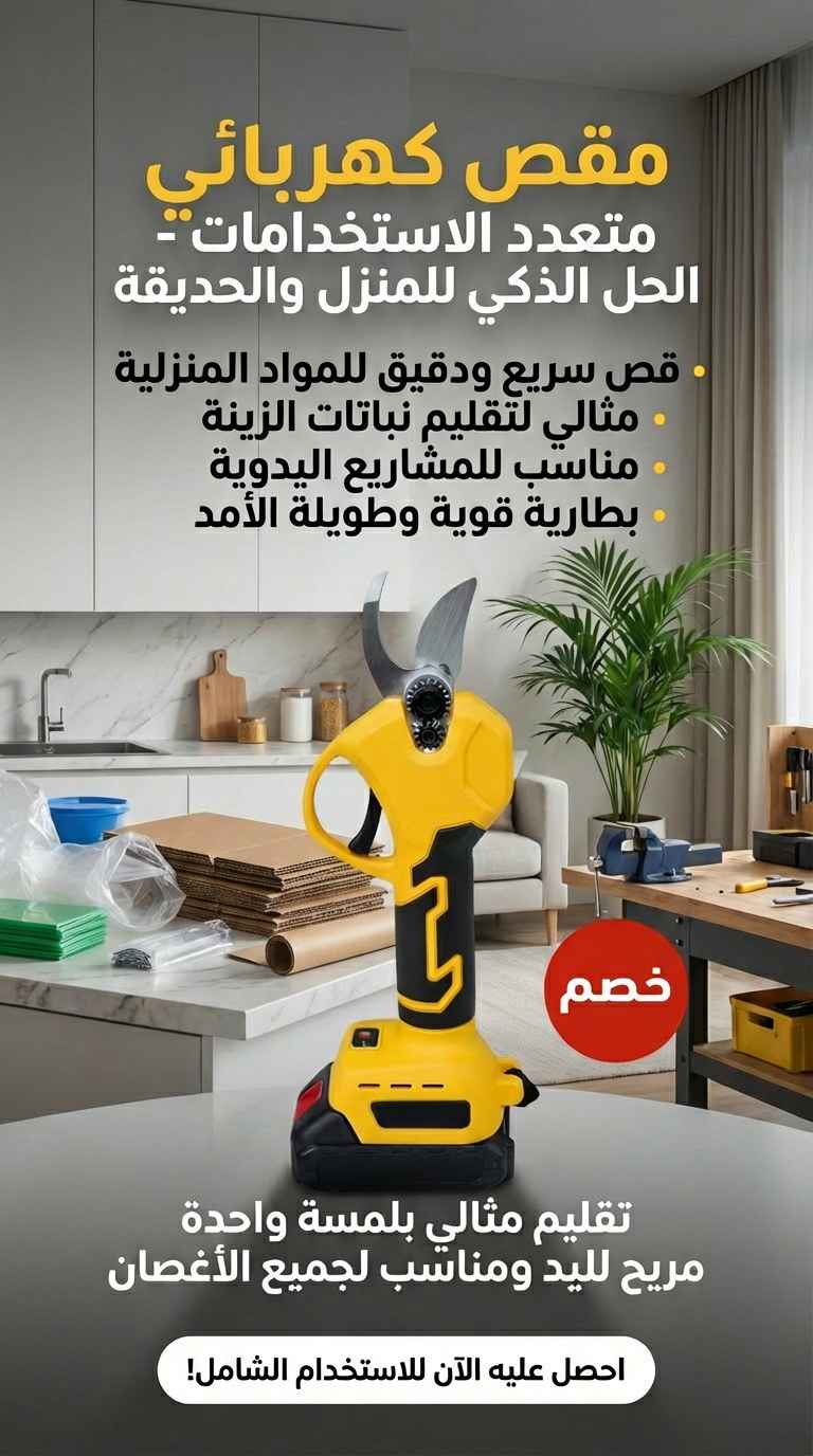 مقص كهربائي قوي ومتعدد الاستخدام، ينجز أعمال القص بسرعة وسلاسة بدون تعب. تصميم آمن وخفيف مع بطاريتين، ضمان سنتين، شحن داخل السعودية والدفع عند الاستلام.